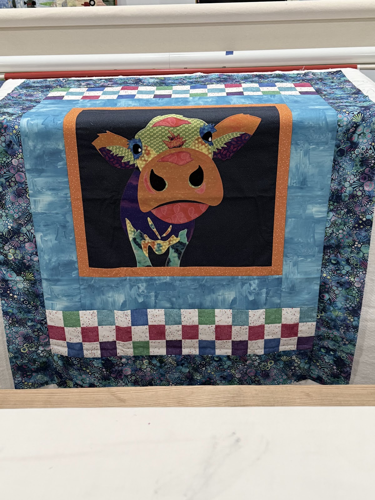 I'm done with retreat for four days before having to head back up on Monday, and yesterday was a very productive day. I had one customer pick up. I finished the Halloween quilt. Jim stitched out a Shop Hop quilt and then we reloaded.